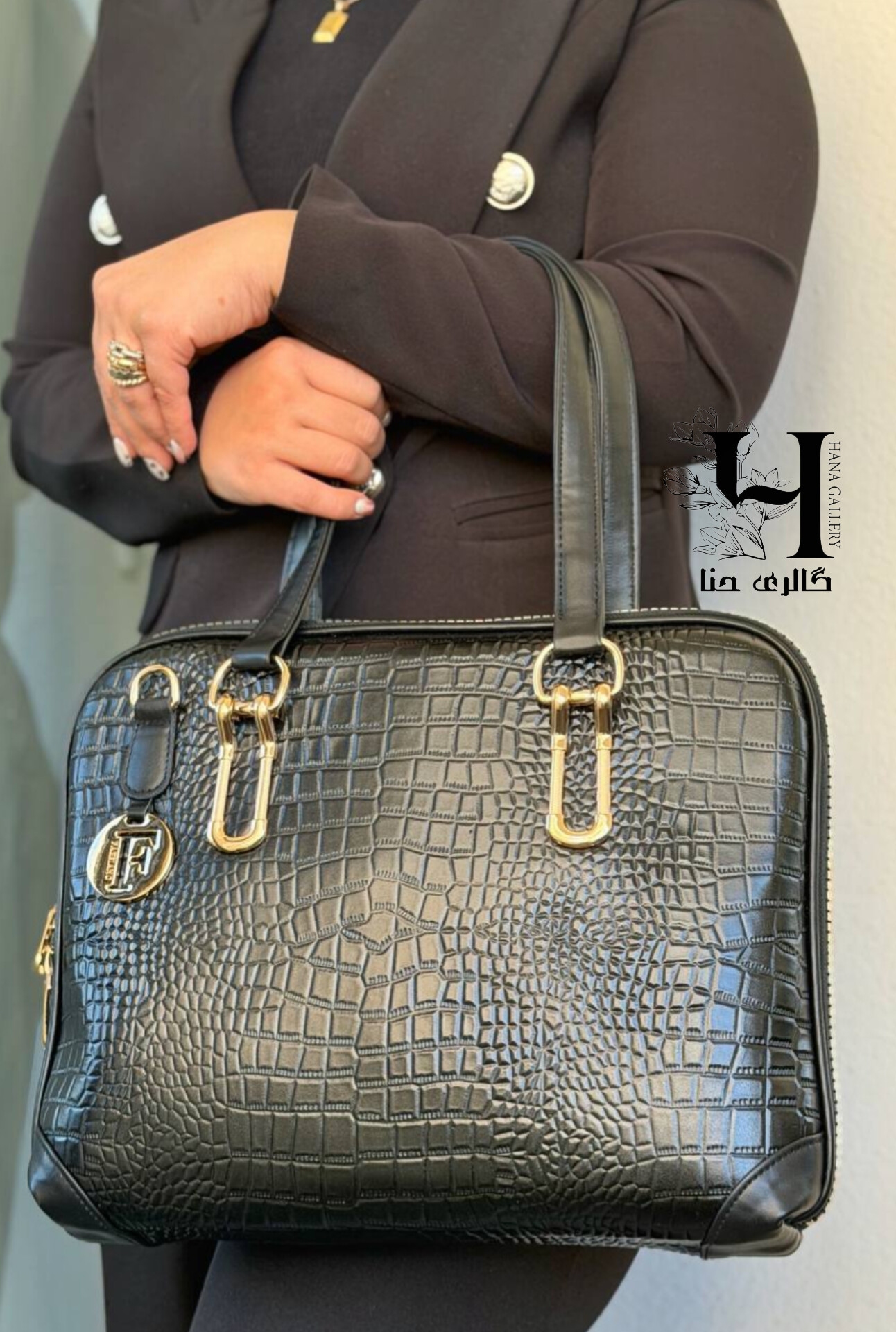 کیف چرمی بزرگ زنانه اداری دانشجویی سه خانه فندی طرح لیزارد کد ۷۳۳