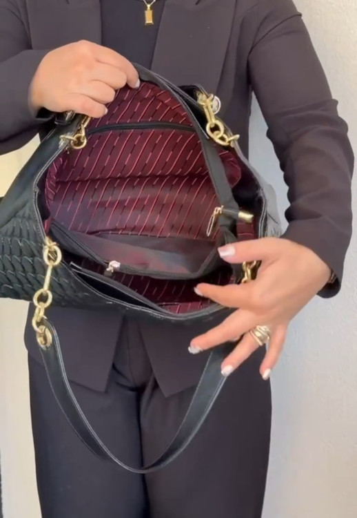 کیف چرمی بزرگ زنانه گلدوزی بند زنجیری کد ۷۳۲
