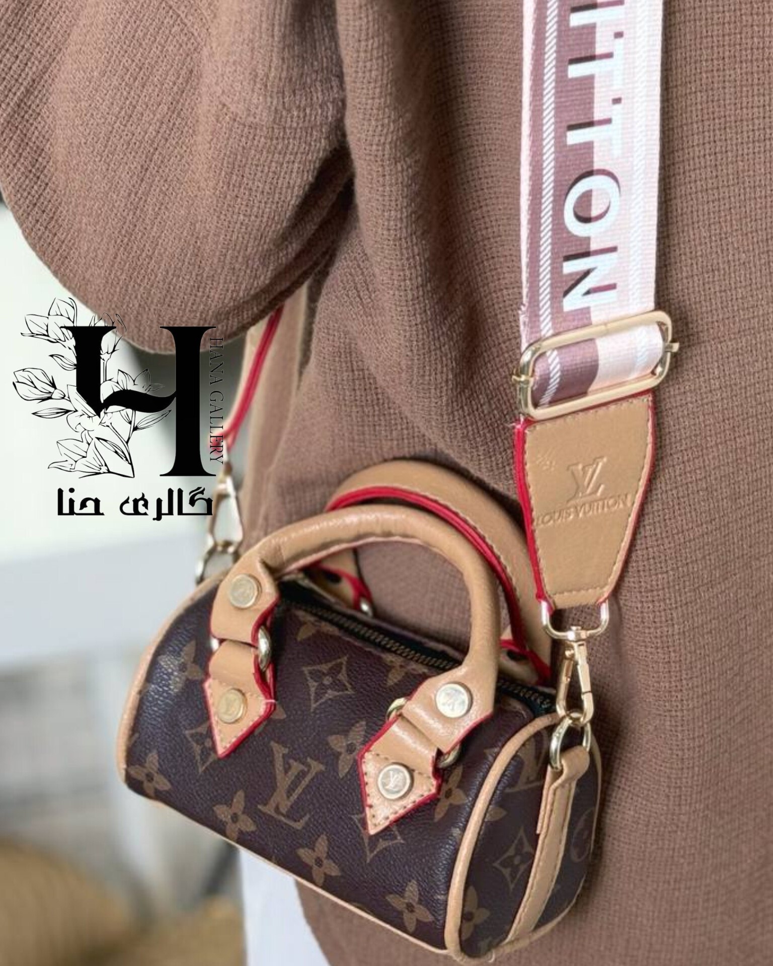 مینی بگ لویی ویتون چرمی کرم قهوه ای