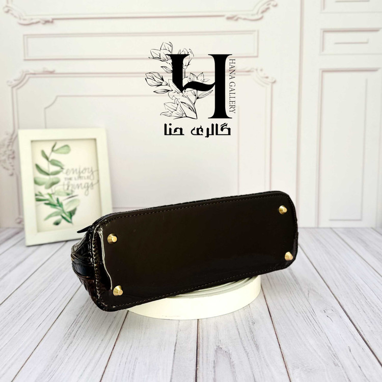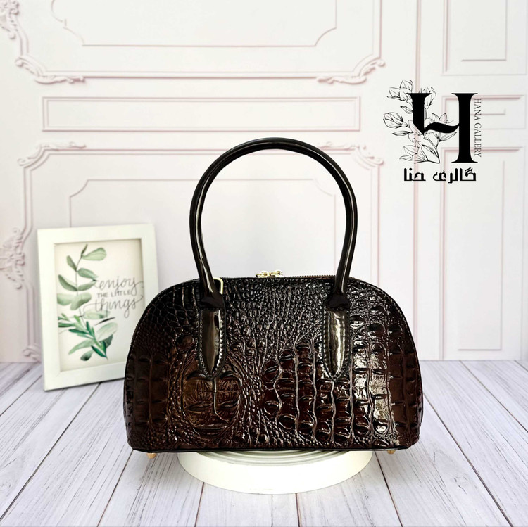 کیف زنانه چرم کوروکودیل قهوه ای تیره براق