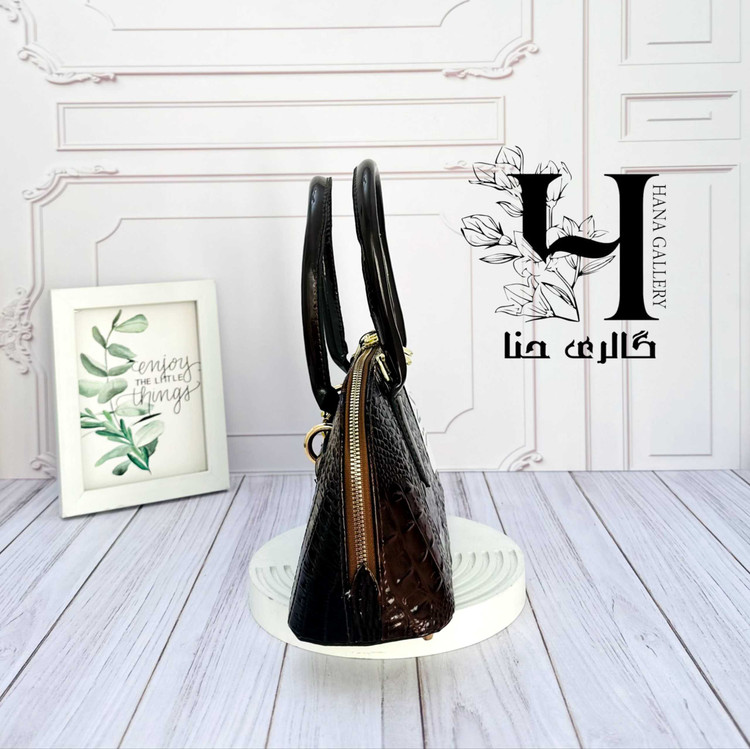 کیف زنانه چرم کوروکودیل قهوه ای تیره براق کد ۸۰۴