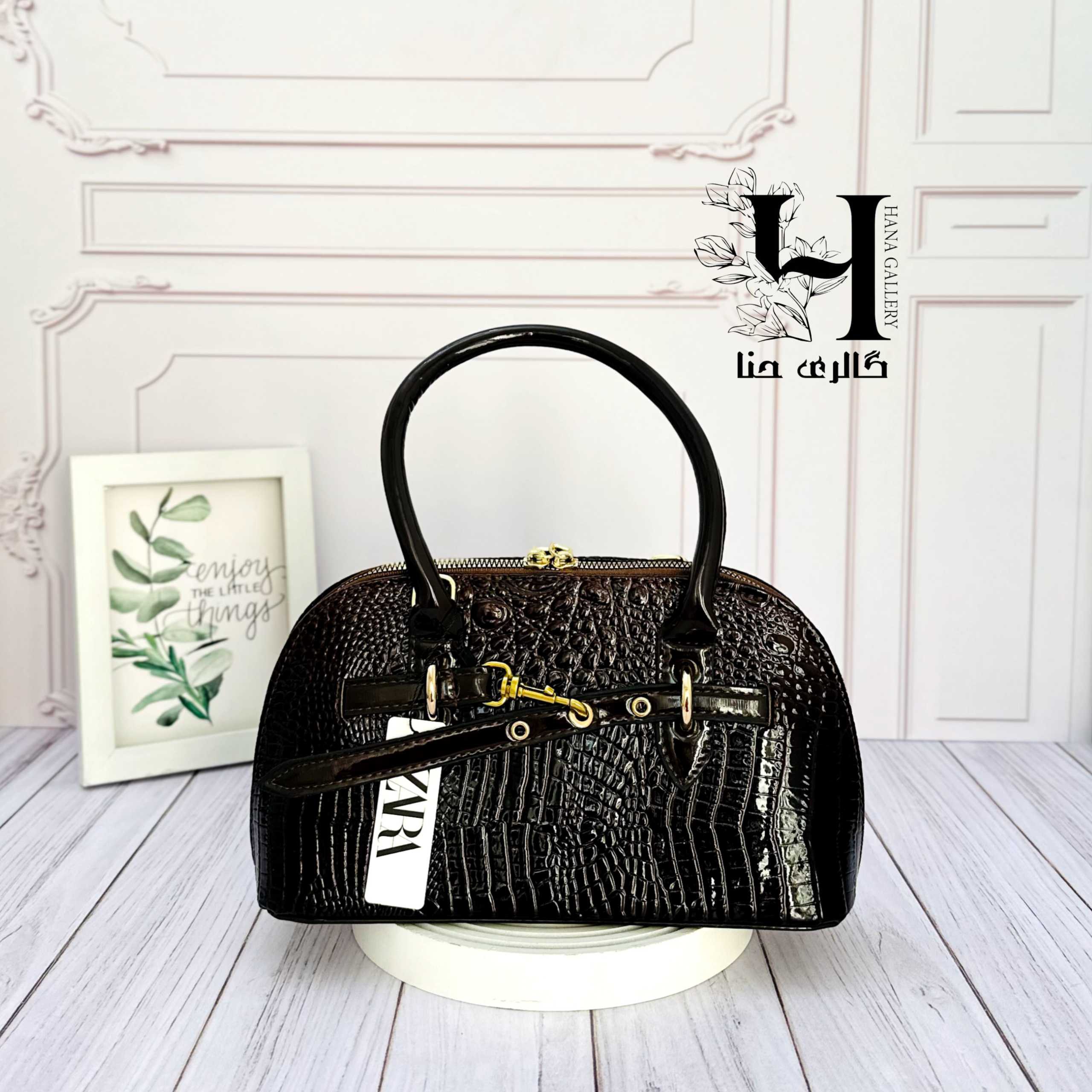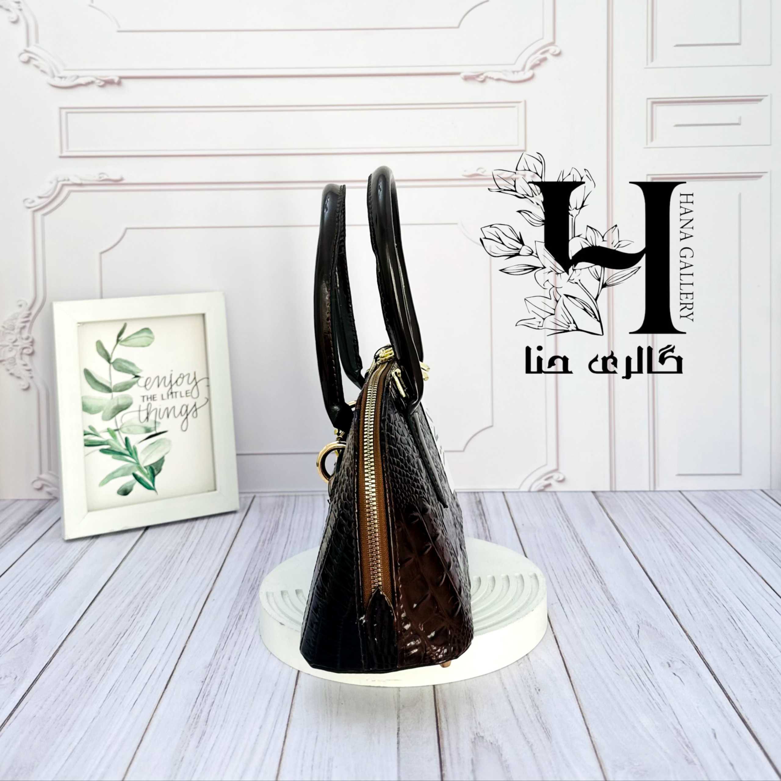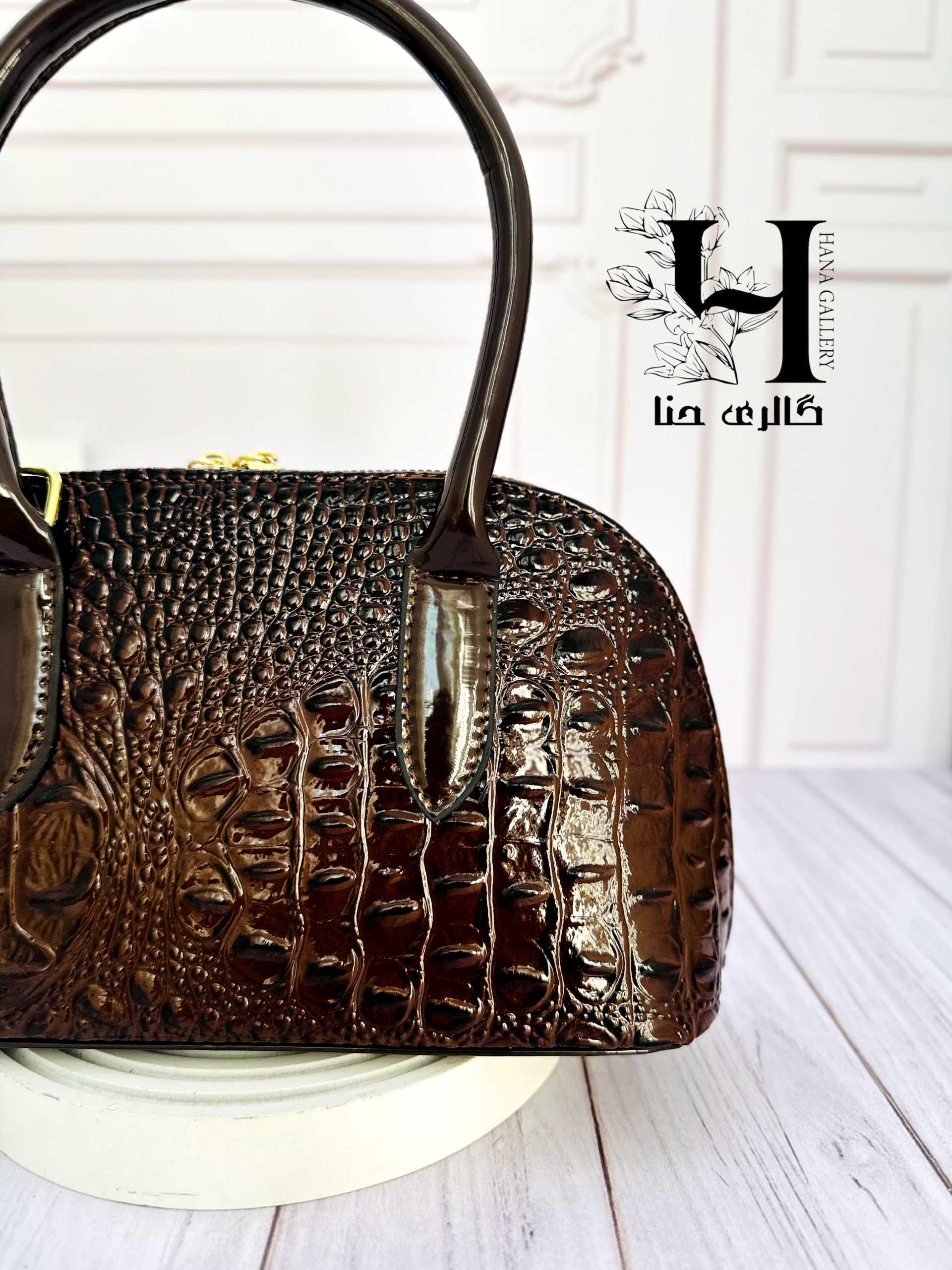 کیف زنانه چرم کوروکودیل قهوه ای تیره براق کد ۸۰۴