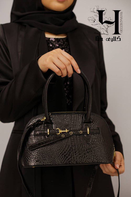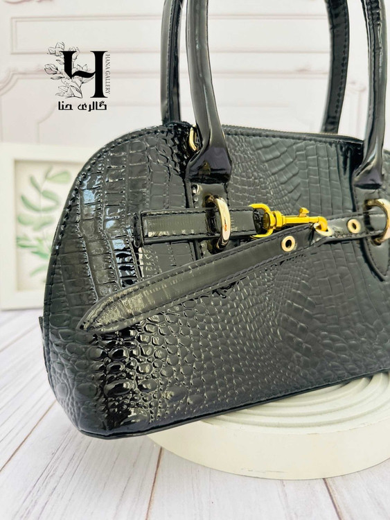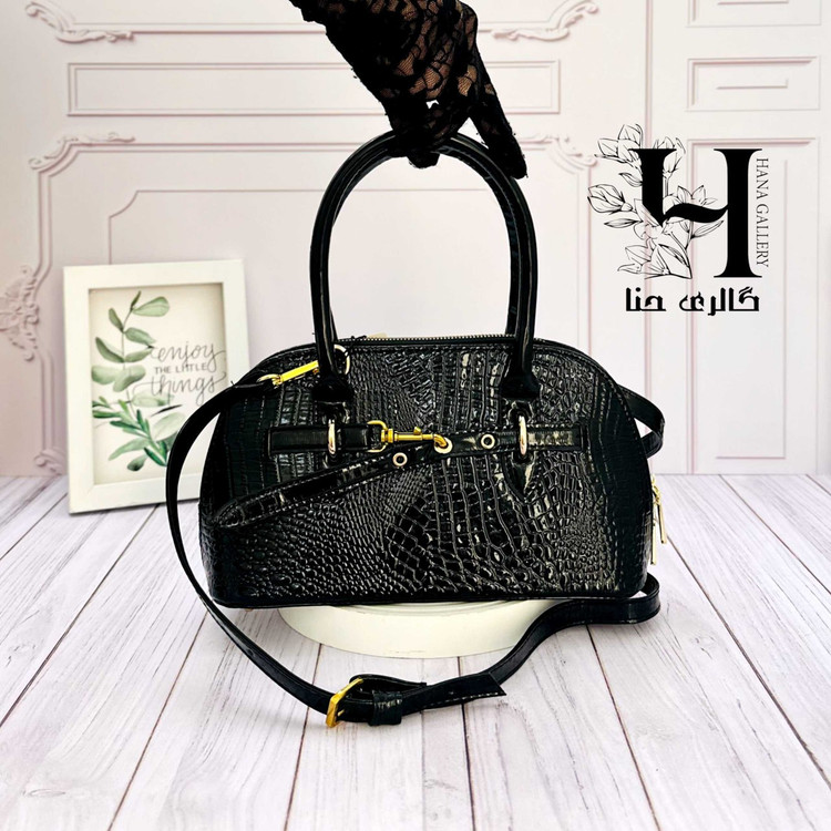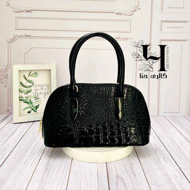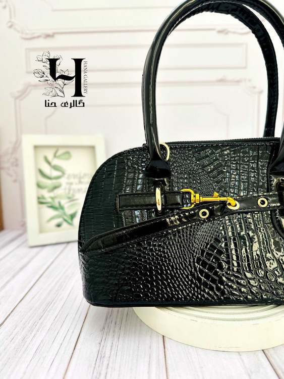 کیف زنانه چرم کوروکودیل مشکی براق/طوسی براق/قهوه ای تیره براق